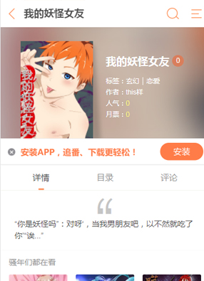 简介:漫画《我的妖怪女友》讲述了“你是妖怪吗”:对呀‘,当我男朋友吧,以不然就吃了你’“诶...”这就是一个讲述了如何将他吃干抹净的小漫画。